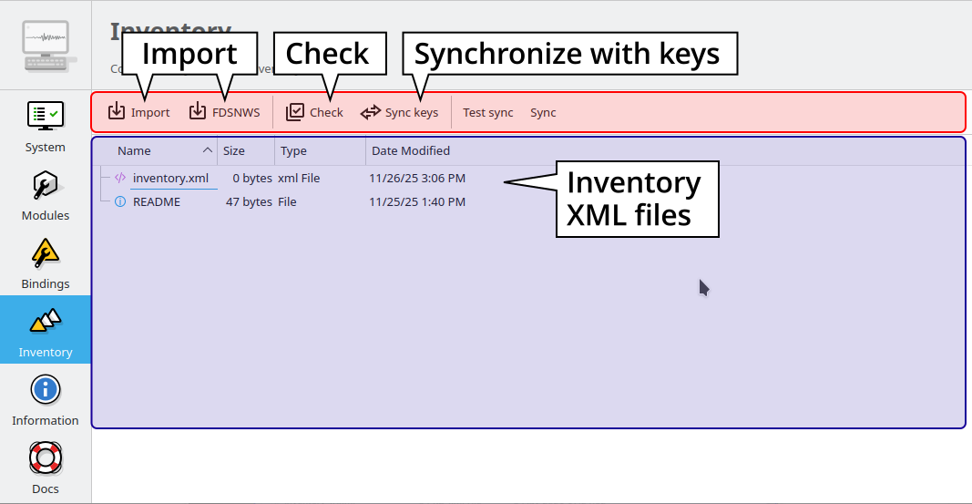 This action is part of sync but can be called also standalone. It merges all inventory XML files and creates key files in